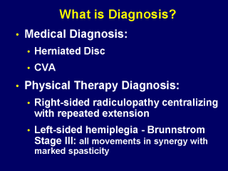 the therapist select treatments that are likely to help the patient. The PT diagnoses, however, should begin to suggest treatment strategies. |