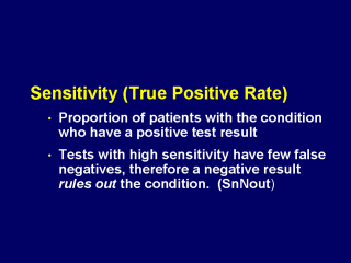 condition. Tests with high sensitivity are valuable for ruling out a condition when a