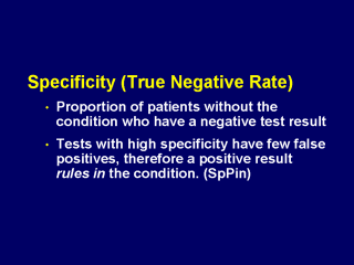 present. Tests with high specificity are valuable for ruling in a condition when a