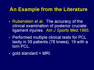 Here is an example from the literature. This study compared multiple tests for PCL laxity.