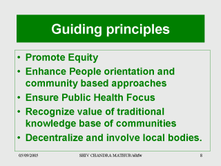 | While health planning at village level is an indication of decentralization, inducting ASHA is recognizing the value of traditional knowledge. Generating a positive culture in favor of public health would spontaneously pave the way for equity. |