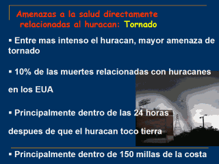 tornados de los huracanes. La mayor concentracion de tornados ocurre a la