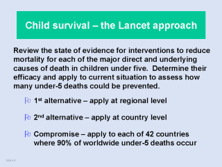 The first step is to obtain as much of the data from existing sources, to further process these data where necessary (such as in the case of data on children ever born and children surviving), and to plot all such data on a chart of U5MR or IMR against reference year of the data. Unlike many indicators, the methodology used in deriving mortality data provides a historical time series from each survey source. The second step is to fit a line to these data such that the line provides the best estimates of U5MR or IMR given the available data. Such a methodology has been developed and has been described and utilized for nearly a hundred countries in the report Trends in Child Mortality in the Developing World: 1960-1996, K. Hill et al, 1998, UNICEF. [This report can be found via Internet at http://www.childinfo.org] |