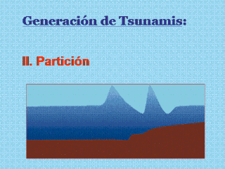 (tsunami distante) y otro tsunami que viaja hacia la costa más