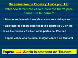 La mayor responsabilidad de diseminación de la ITWS es la espera y/o alerta de tsunami.