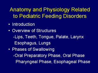 for clinicians to appreciate the “anatomy and physiology” of the swallowing process. Anatomy refers to the parts of the body that are used in swallowing and physiology refers to how all these parts work to make the whole swallowing process successful. |