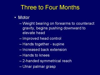 control in supine (on back) and prone (on belly) Bringing the hands together in supine allows the baby to have more awareness of their own body and increases the baby’s visualize things in front of them, including their own body parts (e.g. hands). Ulnar Palmar Grasp: pinky side of hand and palm used for grasp |