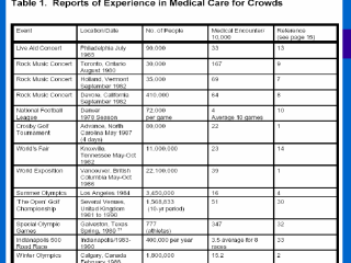 Extraído de Provisión de Atención Médica para masasa, 1996. Colegio Americano de Médicos de Emergencias (