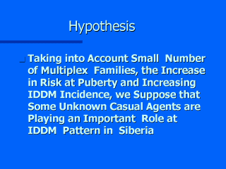 | We suppose that the increasing of IDDM incidence in Siberia reflects global increase in IDDM incidence worldwide and also reflect the increasing of IDDM incidence among children population of Russia. |