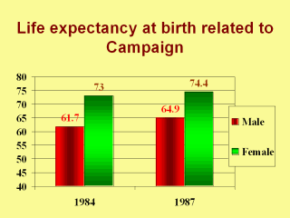 | The impact of these measures on death rates surpassed all expectations. In short period, life expectancy increased considerably especially among men. |