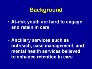 color have traditionally been hard to engage and retain in health care. Recently, comprehensive care models which include ancillary services such as outreach, case management, and mental health services have grown in popularity. These services are believed to enhance retention in care among vulnerable populations, but few studies have examined their impact empirically. |