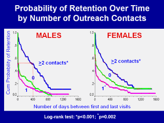 Kaplan-Meier survival curve is shown for each level of the service variable.