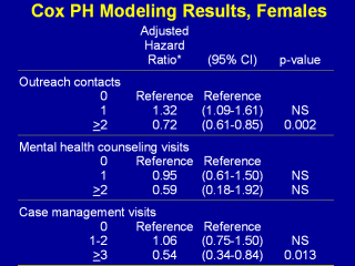 for 2 or more MH counseling visits is quite low at .59. * Adjusted for age, HIV status, race/ethnicity, sexual orientation, any pregnancy, and any unprotected sex with males