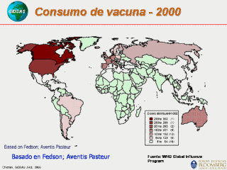 diapositiva muestra el consumo de vacuna en el año 2000. EUA y