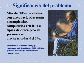 La presencia de discapacidad parece ser un factor principal en determinar estas diferencias en epleo. 43% de las personas con discapacidades dicen que son incapacaes completamente de trabajar debido a su discapacidad o a su problema de salud. Además, a discapacidad más severa mnor probabilidad de que una personas discapacitada sea empleada.