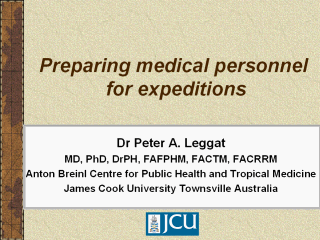 | This paper is a synopsis of a presentation during an invited symposium on Expedition Medicine held during the 5th European Conference on Travel Medicine, Venice, Italy, 23-25 March 2006. |