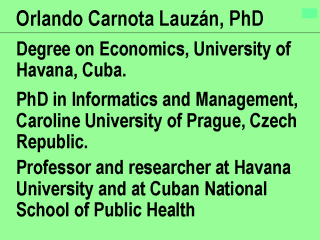 information: The impact of Informatics on management processes is my favorite field of study. I worked as International Consultant for PHO. I have been working as an expert and professor in Mexico, Nicaragua, Chile and Venezuela as well as in my own country, on subjects related to Informatics, Management, Quality Improvement, Control Systems and Information Systems concerning health services. I would very much welcome reviews and comments on this lecture. orlando@infomed.sld.cu. |