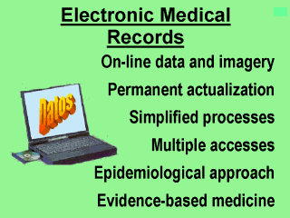 Electronic Medical Records are the main step towards the integration of functions inside and among health care organizations. It implies the possibility of accessing data and imagery from a variety of locations, to produce automatically epidemiological and statistical information, to integrate different providers into one organization, to simplify administrative procedures, and to improve health care quality. |