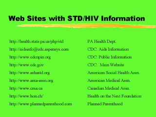 To access web sites with STD/HIV information, please click on on URLs listed on the slide