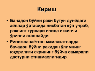 ривожланаётган мамлакатларда ракнинг ушбу туридан юқори даражадаги