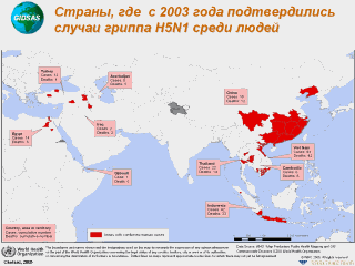 заражению вирусом птичьего гриппа с 2003 года. Карта датирована 2-м марта