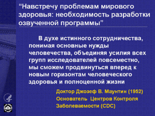 Я хочу разделить с вами цитату из одной из последних статей Доктора Маунтина, в которой он выразил его видение будущего общественного здоровья/здравоохранения.
