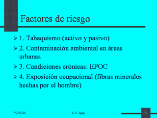 1. Cigarette smoking: smokers have a 10 –25 times higher risk