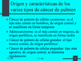pulmón en hombres y fumadores; es el más fácil de detectar en forma