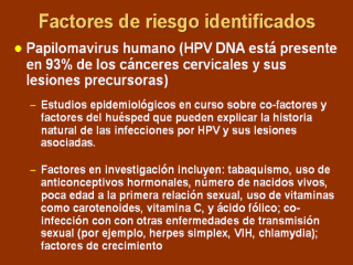 de HPV, otros factores de riesgo parecen incluir ciertos patrones de