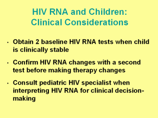 twofold (0.3 log10) or more. One HIV RNA assay method should be used consistently for monitoring each patient. Biologic variation in HIV RNA levels within one person is well documented, and repeated measurement of HIV RNA levels in a clinically stable infected adult can vary by as much as threefold (0.5 log10) in either direction over the course of a day or on different days (5, 42, 47). This biologic variation may be greater in infected infants and young children. In children with perinatally acquired HIV infection, RNA copy number slowly declines even without therapy during the first several years after birth, although it persists at higher levels than those observed in most infected adults (23, 37, 38). This decline is most rapid during the first 12–24 months after birth, with an average decline of approximately 0.6 log10 per year; a slower decline continues until approximately age four to five years (average decline of 0.3 log10 per year). This inherent biologic variability must be considered when interpreting changes in RNA copy number in children. Only changes greater than fivefold (0.7 log10) in infants aged <2 years and greater than threefold (0.5 log10) in children aged >2 years after repeated testing should be considered reflective of a biologically and clinically substantial change. To reduce the impact of assay variability in the clinical management of patients, two samples can be obtained at baseline and the average of the two values used for comparison with future tests. |