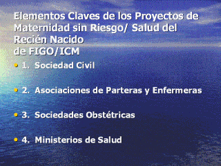 | En virtud de que FIGO ha comprendido la importancia de acercarse a las mujeres en sus propias comunidades, todos los paises que soliciten fondos a través del proyecto de Maternidad sin riesgo/ salud del recién nacido de FIGO se le pide que incluyan a miembros de estos cuatro grupos. |
