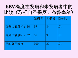 EBV被认为是一种可能的传播媒介。一些已经被研究的控制型病例中,发病者的EBV滴度要高于健康者。由于霍奇金氏症是一种较罕见又是慢性的疾病,观察病情发展需要很长的时间。传播中,疾病本身对于个体的影响又不相同,有些是已经接触过媒介的,而有的是首次与媒介接触的。免疫学上的困难在于,发病的可能性与EBV滴度的增长可能有所关联。同时还有一个问题,很多人都具有相对较高的滴度,说明EBV滴度并不是特异影响霍奇金氏症的。虽然有这么多的模糊点,但是EBV还是被认为与霍奇金氏症有联系,尽管这个联系可能是微弱的