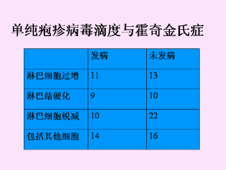 单纯疱疹与霍奇金氏症是无关的,唯一相通的就是病毒媒介控制。这张表格是用来显示,是否