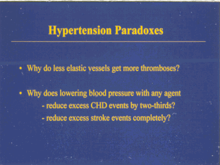 related paradoxes. Firstly, why should less elastic vessels develop more thrombotic