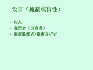 掩蔽,一般称为设盲,是为了减少来自于病人、数据采集者或研究结果的分析者的偏倚而隐瞒治疗分配情况的一种方法。现已证实,当病人或调查者知晓(或甚至只是当他们认为他们知晓)治疗分配情况时,他们可能将他们自己的关于治疗作用的成见引入结果的评估之中。如果设盲是成功的,病人和/或调查者将不知道何种治疗方法被分配了。在一项“单盲”研究中,通常治疗的分配是对病人掩蔽的;在一项“双盲”研究中,病人和调查者都将被掩蔽;“三盲”研究指的是连数据的监控者也不知晓治疗分配情况(更有争议)的研究。