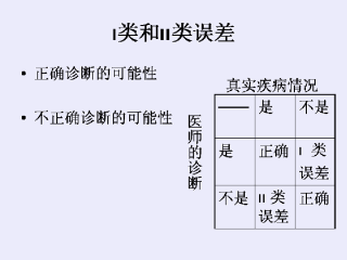 作为一名医师你本身想避免这两类误差。第一类误差就像是你告诉就诊者马是由寄生虫引起的绞痛而实际上不是。第二类误差就像是马是寄生虫引起的绞痛而你告诉就诊者不是。医师不知道马疾的“真实”状况。接近最真实疾病状况是建立在你收集的数据,实验室检验结果以及与种群研究的比较基础之上的。种群研究是由流行病学家操作的。