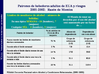 límites diarios y/o semanales de alcohol afecta el riesgo el riesgo para