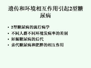 大量证据表明:遗传因素和环境因素相互作用导致2型糖尿病的发生。主要的都列在这里。