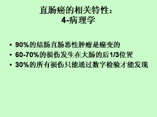 尽管现在的一些研究者陈述说:癌症转向了右边,但大多数的损伤还是发生在大肠的最后60厘米中。这是一个真实的悲剧:总共只有33%的患者可以被简单的数字检验探测到。