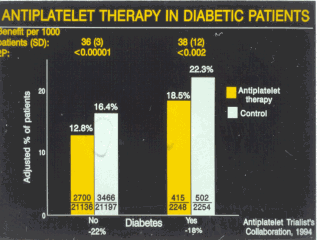 slide I show the benefits of antiplatelet therapy among patients with diabetes and without