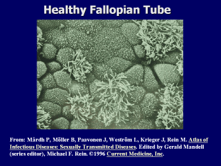 | Infection of the fallopian tubes damage the ciliated cells, which are important for transporting bacteria and sperm. In this slide, you can see a healthy, ciliated fallopian tube, in contrast to… |