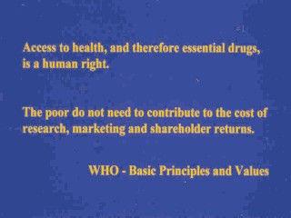 | The prices of pharmaceuticals is not fixed by the cost of its production. The prices for essential drugs should be made accessible to the population and governments of world poorest countries. |