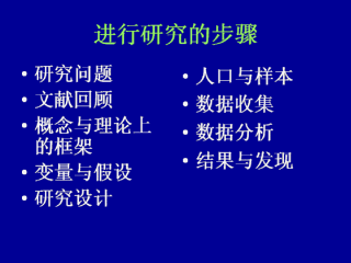 进行研究的基本步骤建于科学方法原则的基础之上。注意到研究设计如何直到有人研究了已经做过的,并提出研究者感兴趣的问题后才付诸实践。