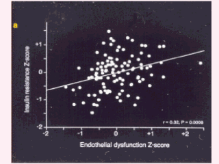 在这张幻灯片中我展示的是在内皮失能和胰岛素抵抗簇间有合理的相关性。大约