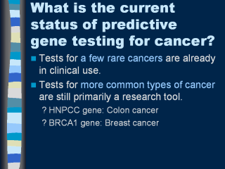 Tests for a few rare cancers are already in clinical use. Predictive gene tests