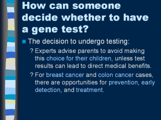 adult-onset conditions, knowing a child's genetic status will not affect the