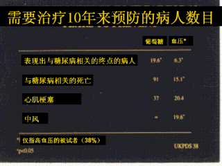 这是对于血糖控制和血压控制的好处的比较。这些数据表现了那些需要治疗