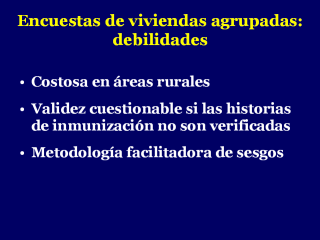 de inmunización es espacialmente agrupada o la cobertura no es homogénea