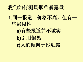关于吸烟及减少吸烟量对出生结果的影响的研究一直未公开的原因是我们缺少精确测量烟草暴露量的工具。同一报道最常被引用,但妇女们可能由于许多原因被不正确报道。另外,所使用的香烟种类也可影响烟草暴露量,还有香烟实际被吸入的百分比以及吸气的深度。