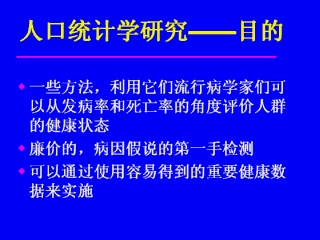 处理这样的问题,诸如疾病在人群中是在增加还是减少以及在人群中暴露于可能的原因下越多疾病是不是会越经常发生。